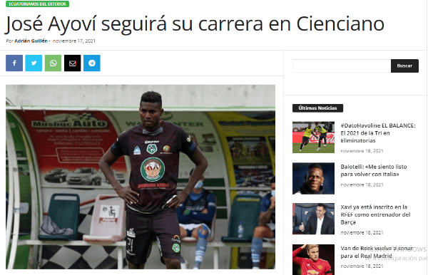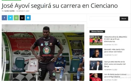 Veloz y picante son las características principales de este futbolista en su país. José Ayoví será futbolista de Cienciano del Cusco informan desde Ecuador. El delantero hizo una buena temporada con el Mushuc Runa, concretando acciones de peligro y siendo constante en su crecimiento futbolístico.