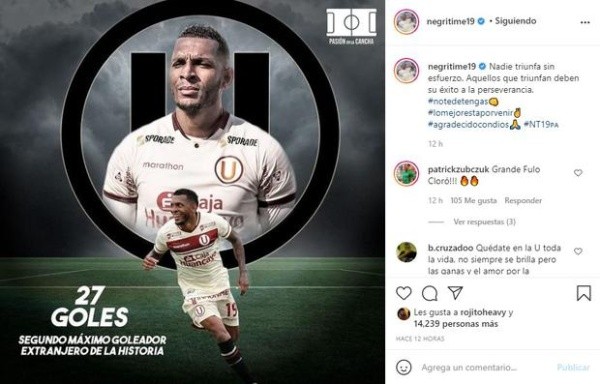 Mediante mensajes, los hinchas de Universitario agradecieron el esfuerzo del delantero panameño que desde su llegada al equipo la temporada 2017.
