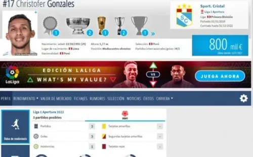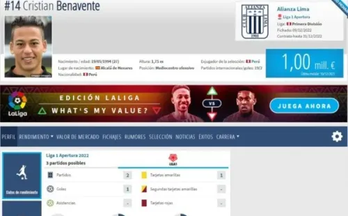 Según indica Transfermarkt, estos serían los precios de ambos jugadores más importantes de Alianza Lima y Sporting Cristal. Por parte de Christofer Gonzales, estaría valorizado en 800 mil euros, siendo el monto más elevado de los jugadores celestes. Cristian Benavente figura con 1 millón de euros, esto indicaría que es el más caro de la plantilla ‘íntima’ sobrepasando a Jefferson Farfán.