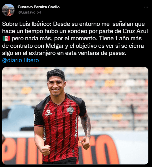 Pero vamos a lo cierto, hasta este momento el nombre de Iberico se utilizó para formar una oración con Cruz Azul. Hasta ahí, nada más. Y quien nos da una referencia mayor a este hecho, es como siempre, el periodista del Diario Líbero y PBO Campeonísimo. Gustavo Peralta, en su cuenta de Twitter, brindó detalles del momento actual del ex Universidad San Martín.