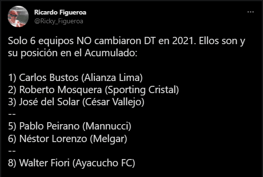 “Solo 6 equipos NO cambiaron DT en 2021. Ellos son y su posición en el Acumulado: