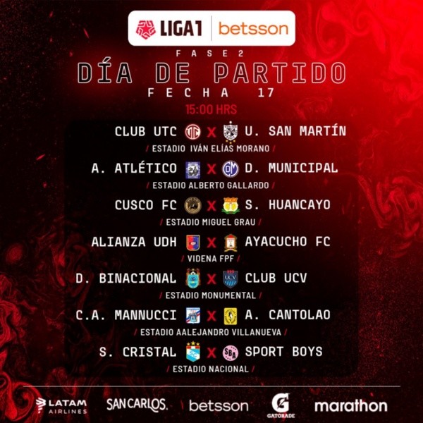 El temible descenso y las clasificaciones a torneos internacionales se jugarán esta tarde, desde las (3:00 PM – HORA PERUANA). “La Liga 1” tiene una jornada para remarcar este sábado 30 de octubre, porque abarcará 7 duelos en simultáneo, los cuales serán muy importantes.