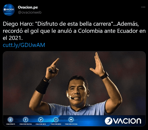 “Hinchadas, sucesos sociales que involucran también al país, ni tampoco sorteo de camisetas, ni materiales deportivos. La página llamada ‘Diego Haro Referí FIFA’ , no me pertenece. Y ha sido autorizada ante las autoridades por delito de suplantación de identidad”.