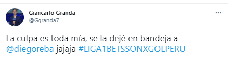 Donde puso el siguiente mensaje para desatar las carcajadas entre sus seguidores: “La culpa es toda mía, se la dejé en bandeja a Diego Rebagliati jajaja”. Lo que dijo el ex empresario de futbolistas fue: “lo que sería bueno es que comas, en vez de cocinar”. Épico momento de la televisión peruana.