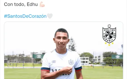 “¡Refuerzo Santo!Le damos la bienvenida a Edhu Oliva, jugador a préstamo de Alianza Lima, que viene a defender nuestros colores Con todo, Edhu”, fueron las palabras que le dedicó el club ‘santo’ en sus redes sociales al joven mediocampista.