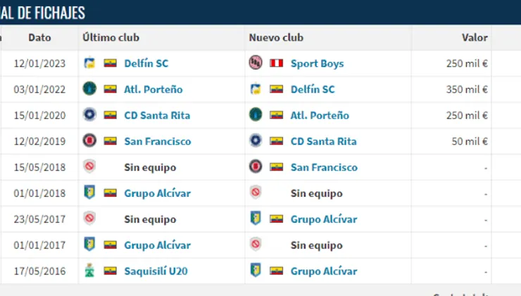 Este delantero ecuatoriano, tiene 24 años, estuvo en Delfín la campaña anterior. Con el conjunto del Ídolo del Manta, marcó tres goles en la Liga Pro de Ecuador. Aunque, entre sus estadísticas resaltan que gritó más de 20 goles en la Segunda División de dicho país.