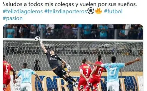 “Saludos para todos los que nos encargamos de ahogar los gritos de gol! Feliz Día del portero porque desde que tenía uso de razón siempre quise hacer mi sueño realidad. Saludos a todos mis colegas y vuelen por sus sueños“, escribió en su twitter.