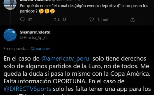 Aunque después le explicaron el tema de las transmisiones de América TV con la Eurocopa 2021. No es un tema de no querer transmitir, sino que su licencia es para solamente ‘algunos cotejos’. Información desconocida al día de hoy, por eso el malestar de los televidentes, entre ellos Marcio Valverde.