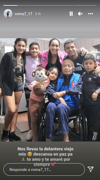 ‘Rei’ en sus historias notificó lo siguiente: “Nos llevaste la delantera viejo mío, descansa en paz, pa. Te amo y te amaré por siempre”. Adjuntando fotografías junto a la persona que más le enseñó, señala. A quien, de ahora en adelante, recordará con todo el amor permitido.