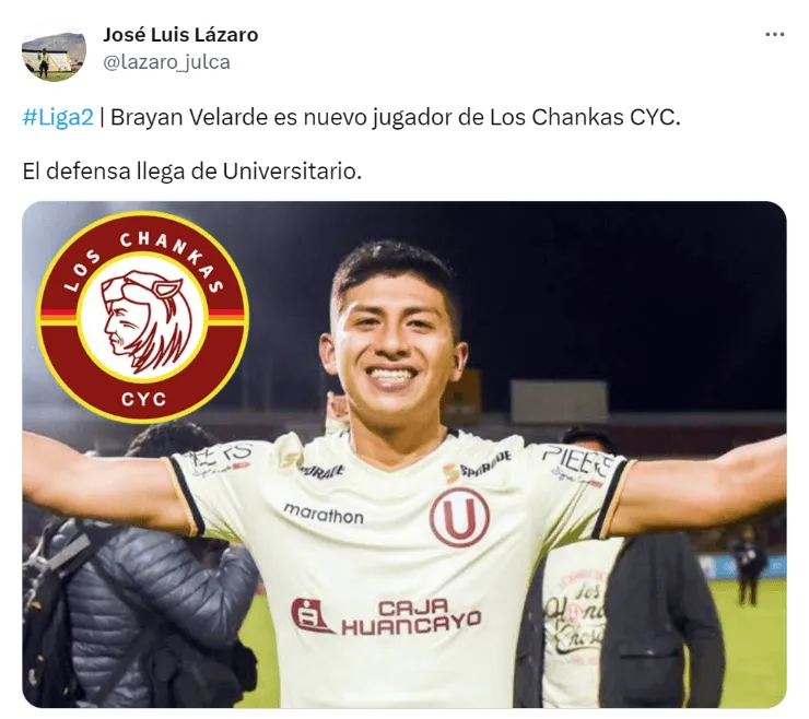 Después de unos meses, finalmente el zaguero encontró equipo. Brayan Velarde, a falta del anuncio oficial, disputará la temporada 2023 en el club Los Chankas CYC de Andahuaylas, actualmente en Liga 2.