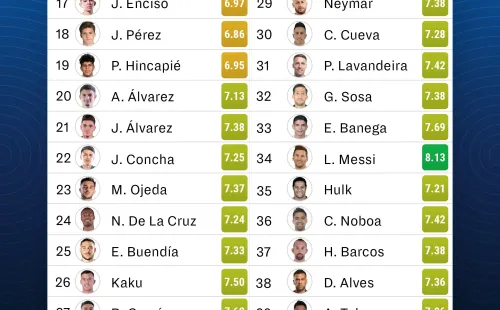 SofaScore, la web principal de estadísticas que usa FIFA, hizo un recuento interesante, el cual tituló de la siguiente manera. Haciendo una explicación considerable, porque esta reseña destaca el trabajo hecho a lo largo del año que se fue. Los cracks más constantes.