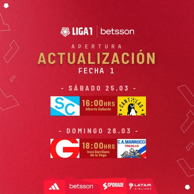 Se vienen cambios en la programación de la fecha 1 del torneo peruano. La Liga de Fútbol Profesional a través de sus redes sociales anunció la modificación de los horarios de dos partidos correspondientes a la fecha 1 del torneo.