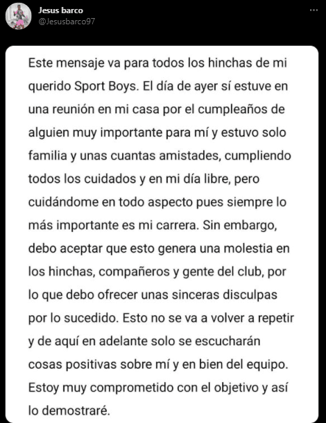 Y la respuesta del futbolista apareció de forma inmediata, utilizando su cuenta de Twitter. Donde aceptó haber estado ahí, no desmintió las imágenes difundidas, como también pidiendo las disculpas del caso. El tiempo dirá si su promesa ‘de demostrar lo que vale en cancha’, termina siendo realidad. O este acto de poco profesionalismo, lo sepulta.