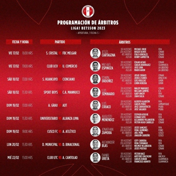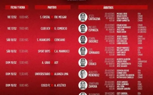 “Augusto Menéndez estará acompañado de Stephen Atoche y Leonar Soto como asistentes, mientras que el cuarto árbitro es Alejandro Villanueva y el asesor de este compromiso es Víctor Hugo Carrillo”. Como podemos notar, este cotejo tiene en el papel, una terna de lujo, la cual no debería pasar sobresaltos.