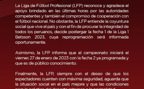 Todo esto, claro está, dependiendo de cómo esté la situación social en territorio peruano. Abarcando gran parte del mapa, el fútbol profesional se reparte por todo el Perú, y los conflictos sociales podrían ser un barrera para que, quizá, en algunas provincias no se pueda dar las garantías para realizar el espectáculo deportivo de la Liga 1.