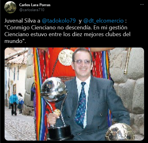 En una nota íntegra a ‘El Comercio’, Juvenal Silva quiso explicar también su historia con el famoso ‘Papá de América’: “Desde muy joven nos inculcaron los valores en el glorioso colegio Nacional de Ciencias. Nuestros profesores nos enseñaron a querer al Cienciano. Cuando el equipo ganaba en la Copa Perú, nos daban feriado el lunes. Justamente habla del cariño, hace poco, con Ibáñez, Lugo, Portilla, Acasiete, Bazalar, García, Carty, Maldonado, Saraz, entre otros, quienes lograron que nuestra institución sea la más grande de América”.