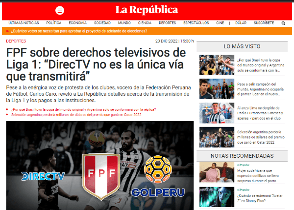 El vocero de la Federación Peruana de Fútbol, Carlos Caro, tuvo una charla importante con el Diario La República, donde brindó detalles exclusivos acerca de la transmisión de nuestro balompié y los pagos a los equipos que conforman el conglomerado de élite local. Una contestación enérgica a la queja por parte de los clubes a favor de GOLPERU.