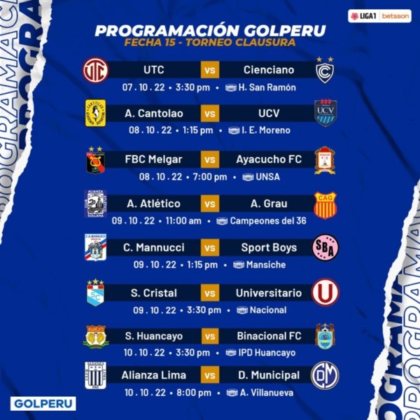 FECHA 15 DEL TORNEO CLAUSURA – FÚTBOL PERUANO: