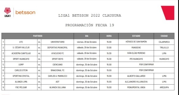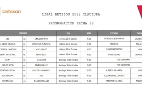 FECHA 19 – TORNEO CLAUSURA (FÚTBOL PERUANO):
