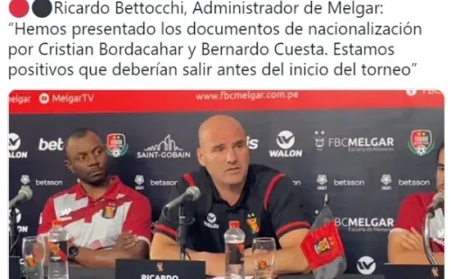 El cuadro de FBC Melgar podría darle un vuelco a sus intenciones de cara a la temporada 2023 de la Liga 1 y de la Copa Libertadores, así lo aseguró el directo Ricardo Bettocchi, encargado de la administración del cuadro de Arequipa.