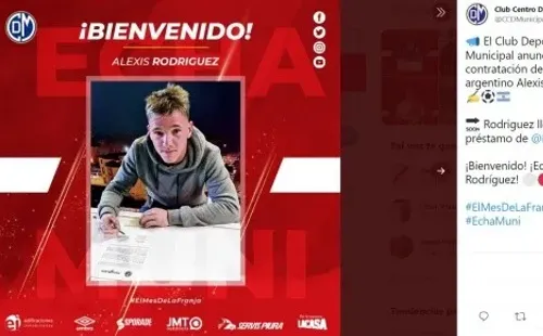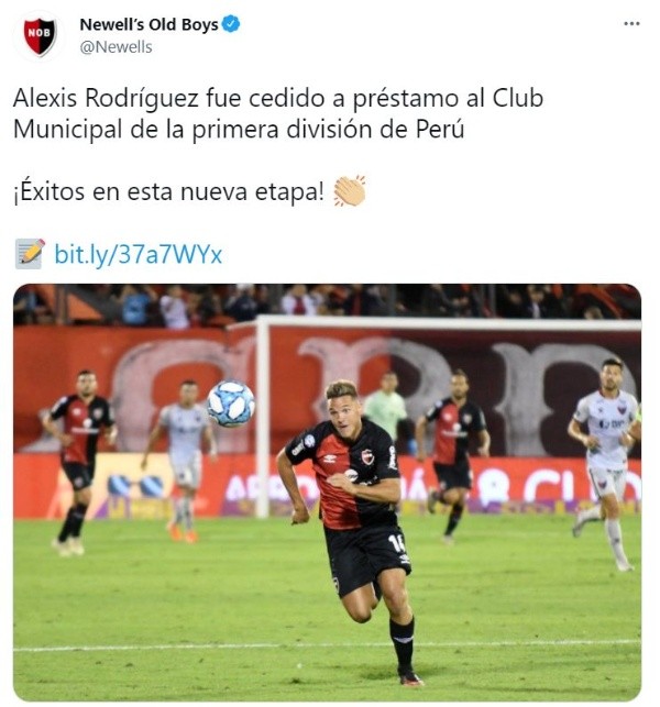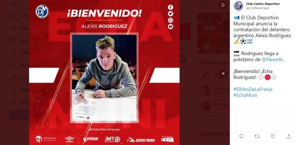 El club se sigue reforzando, desde Argentina en la página web de Newell’s Old Boys indican que el delantero Alexis Rodríguez llega como refuerzo al equipo de Deportivo Municipal. “El Club Atlético Newell’s Old Boys informa que este viernes se acordó la cesión de Alexis Rodríguez al Club Centro Deportivo Municipal que milita en la primera división de Perú”, agregan desde el cuadro de ‘La Lepra’.