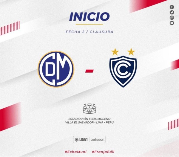 Deportivo Municipal no tuvo el arranque deseado en el torneo y acude a este duelo tras igualar 1 a 1 ante su similar de Ayacucho FC. Cienciano, por su lado, le ganó 2 a 0 a César Vallejo y espera mantenerse en el sendero de la victoria.