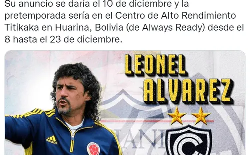 Según, Marcello Merizalde, periodista de Líbero informó que Leonel Álvarez, exentrenador de la selección colombiana en el 2011, será quien asuma el plantel Rojo para el 2023.