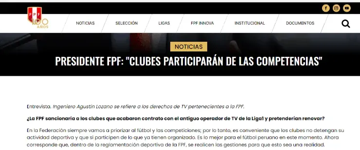 “En la FPF siempre vamos a priorizar al fútbol y las competiciones; por lo tanto, es conveniente que los clubes no detengan su actividad deportiva y que sí participen de lo que ya tienen organizado. Es lo mejor para el fútbol peruano en este momento. Ahora corresponde que, dentro de la reglamentación deportiva de la FPF, se realicen las gestiones para que esto sea una realidad”, mencionó Agustín Lozano.