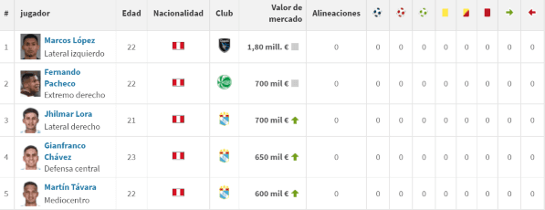 Una grata apareció en Sporting Cristal, la cual rápidamente se volvió en una realidad. Al punto de llenarle los ojos al ‘Tigre’, y considerarlo en las últimas fechas FIFA. Lo cual lo revalorizó de manera sostenida. Está valorizado también en 700 mil euros.