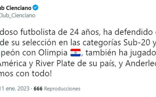 “El habilidoso futbolista de 24 años, ha defendido el escudo de su selección en las categorías Sub-20 y Sub-17. Campeón con Olimpia, también ha jugado en Sol de América y River Plate de su país, y Anderlecht de Bélgica. ¡Vamos con todo!”, publicaron.
