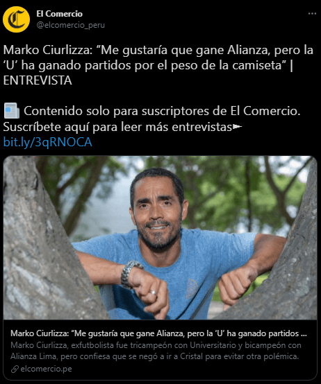 Además, Ciurlizza contó brevemente cómo se dio el paso de Universitario de Deportes, al equipo del cual él es hincha: “Cuando Alianza me buscó, la ‘U’ no hizo nada por retenerme, así que tuve que irme, más allá de mi hinchaje, fue un tema profesional”.