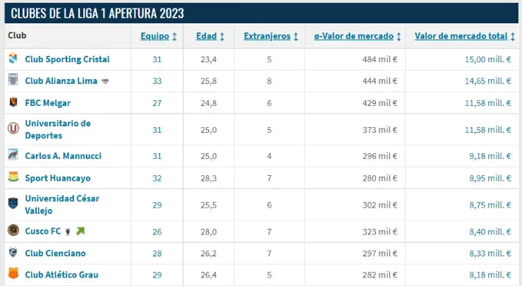 Sin embargo, eso no los acredita en tener los jugadores más caros del balompié nacional, ni tampoco a que podrán alzar el título a fin de año. Solo que a raíz de todo esto, ha salido una nueva estadística que menciona que Sporting Cristal, es la única escuadra que tiene los futbolistas más caros del certamen, según transfermarkt.