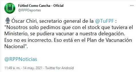 Después de esto, se fueron descubriendo más datos. Hubo versiones del MINSA y también se supo que la lista contemplaba a más de 100 personas. De todo esto fue conltado Oscar Chiri de la FPF que no negó nada de lo acontecido como si fuera completamente normal.