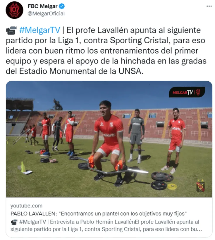 En el debut de Pablo Lavallén, FBC Melgar venció el domingo pasado 1-0 a Carlos A. Mannucci. En ese sentido,el entrenador argentino, declaró respecto al encuentro y sobre el próximo duelo que tendrán ante Sporting Cristal en el estadio la UNSA de Arequipa, por la segunda fecha del Torneo Clausura de la Liga 1.