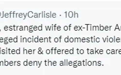 “Genessis Alarcón, esposa separada del ex Timber Andy Polo, alega que dos semanas después del incidente doméstico que involucró a Polo, dos representantes del Portland Timbers la visitaron y le ofrecieron cuidarla si ella no presentaba cargos. Timbers niega las acusaciones“, informó el periodista.