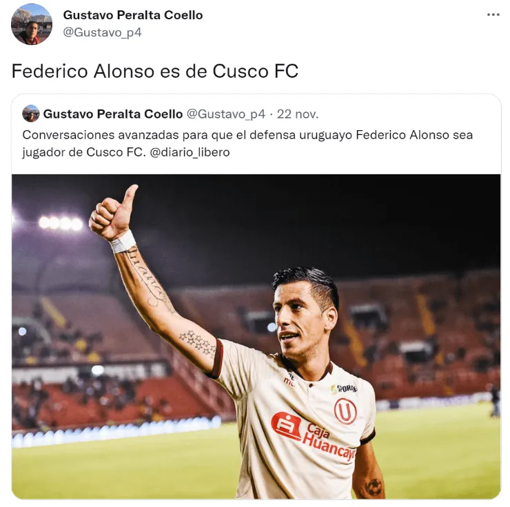 Federico Alonso ha sido el elegido porla directiva de Cusco FC para que se integre a la plantilla que viene armando el cuadro cusqueño para afrontar la siguiente temporada del fútbol peruano, al que regresará tras un año de ausencia.