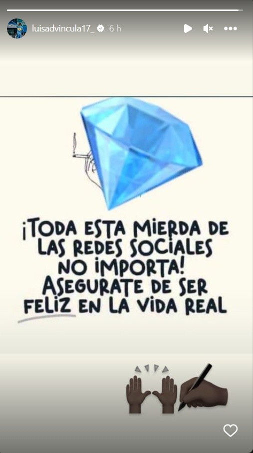 “¡Toda esta mierda de las redes sociales no importa! Asegúrate de ser feliz en la vida real“, compartió en sus historias de Instagram Luis Advíncula. Poniendo dos emojis más, lo más probable es que el mensaje sea por lo que sucedió en el duelo entre Boca Juniors y Racing Club.