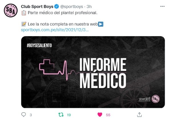 Sport Boys fue uno de los primeros equipos que inició su pretemporada (6 de diciembre) para afrontar la temporada 2022 de la Liga 1 y la fase previa de la Conmebol Sudamericana, donde tendrá que enfrentar a Ayacucho FC. Y tal parece que el nivel de exigenciales pasó factura, ya que este jueves el parte médico del cuadro rosado arrojó varios lesionados.