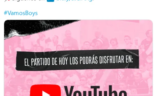 “¡ATENCIÓN ROSADOS! La transmisión del partido va en vivo por youtube”, se lee en su publicación.