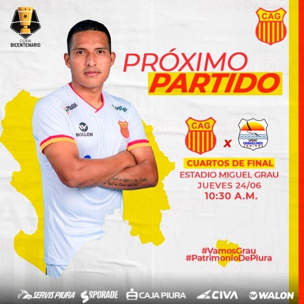 Se juegan los cuartos de final de laCopa Bicentenarioy este jueves24de junio, SportChavelines Juniorsen condición de local recibe a su similar deAtlético Grauen un cotejo que entregará grandes emociones. El duelo será transmitidoEN VIVO Y EN DIRECTOa través de la pantalla deGOL PERÚ.
