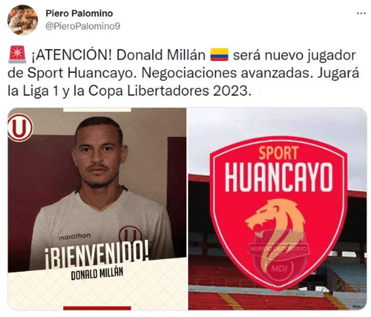 El equipo de la Incontrastable aseguró el fichaje del colombiano Donald Millán, quien llega procedente de UTC. Además, el futbolista es muy recordado en el fútbol peruano por su paso por Universitario de Deportes, donde fue una de las figuras del equipo.