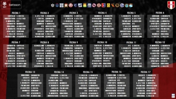 Además de esto, también se hizo todo el fixture. Les adjuntamos la foto con toda la información y la programación del campeonato peruano. Ya podemos comenzar a contar los días para la primera fecha ¡Qué ilusión!