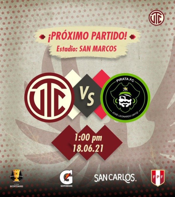 Pirata, por su lado, sabe que este reto no será sencillo y tratará de repetir el resultado registrado en el último antecedente entre ambos planteles. Los visitantes avanzaron tras ganar desde los doce pasos su emparejamiento ante el conjunto de Cienciano.
