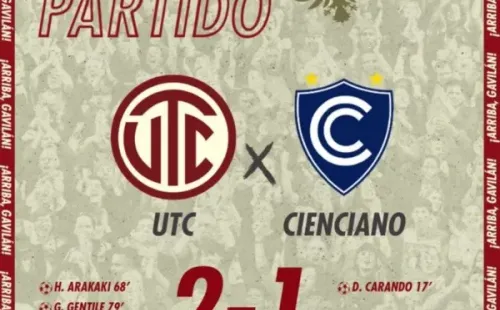 Los goles de UTC de Cajamarca llegaron gracias a las anotaciones de Hideyoshi Arakaki y Gaspar Gentile. Con un caso curioso, especial, para tomar en cuenta, porque con 10 jugadores lo terminaron ganando. Nicolás Ortiz al minuto 49 se fue a las duchas por doble amonestación. Aún con todo eso, le alcanzó para salir vencedor.