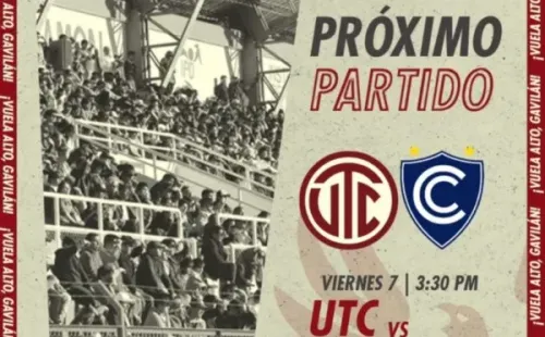 Este partido que estará abriendo la jornada del día viernes 7 de octubre, se estará jugando desde las (3:30 PM – HORA PERUANA) en el ‘Estadio Héroes de San Ramón’. Ahí UTC de Cajamarca será local ante Cienciano del Cusco, con la intención de acumular la mayor cantidad de unidades. Urgen de resultados positivos por sus irregularidades.
