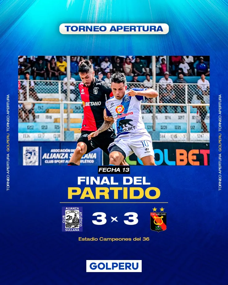 Un partidazo se vivió y gozó en el estadio Campeones del 36, cuando Alianza Atlético empató en los últimos minutos ante FBC Melgar, al final el resultado quedó 3-3. Cuando en un principio el dominó ganaba 3-1.