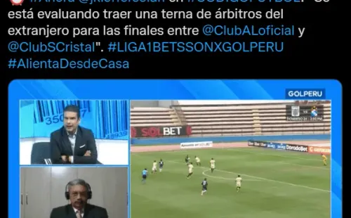 “Se está evaluando traer una terna de árbitros del extranjero para las finales entre Alianza Lima y Sporting Cristal”. Sostuvo el popular narrador de fútbol y otros deportes. Esto lo señaló porque el tema de debate era el nivel cuestionado de los árbitros en el torneo local.