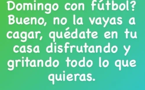 ¿”Extrañabas un domingo con fútbol? Bueno, no la vayas a cag…, quédate en tu casa disfrutando y gritando todo lo que quieras”. Propuso el mediocampista de ‘El Rojo Matador’ en una historia de su cuenta de Instagram. Un mensaje bastante ácido, pero realista por lo que se está viviendo en el Perú con respecto al COVID-19.