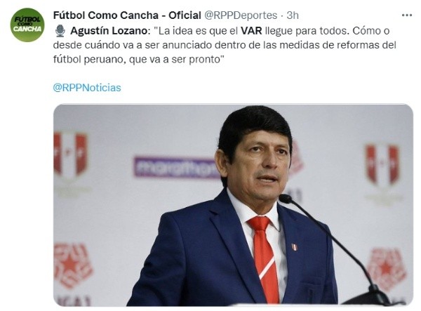 Brindando una entrevista exclusiva a RPP Noticias, el presidente de la Federación Peruana de Fútbol Agustín Lozano reveló que la idea es implementar el VAR en una serie de reformas que están por ejecutarse en la Liga 1.