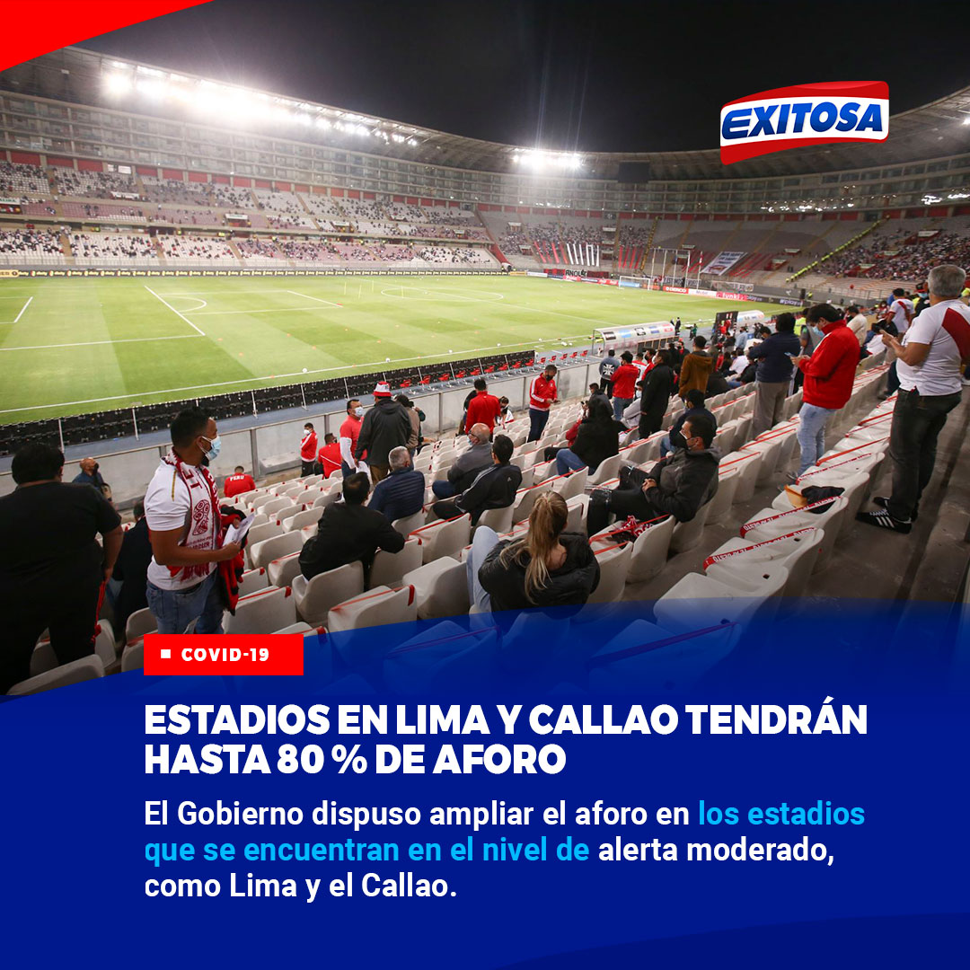 Buena noticia para el fútbol peruano en algunas regiones del país. El gobierno dio luz verde para que los estadios de Lima y Callao puedan albergar el 80% del aforo, esto debido a que el nivel de alerta entróa moderado, ya que los contagios por Covid 19 han venido descendiendo de manera favorable, gracias a las vacunas. Esta noticia fue publicada en el diario El Peruano.